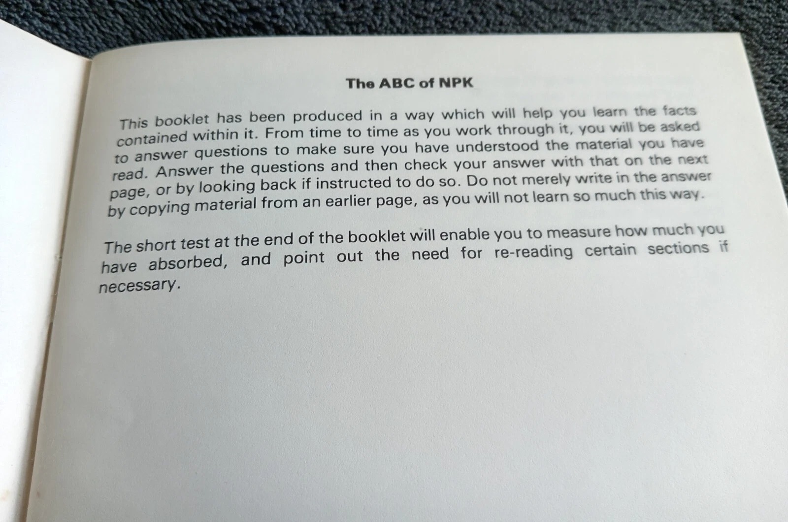 This booklet has been produced in a way which will help you learn the facts contained within it. From time to time as you work through it, you will be asked to answer questions to make sure you have understood the material you have read. Answer the questions and then check your answer with that on the next page, or by looking back if instructed to do so. Do not merely write in the answer by copying material from an earlier page, as you will not learn so much this way.