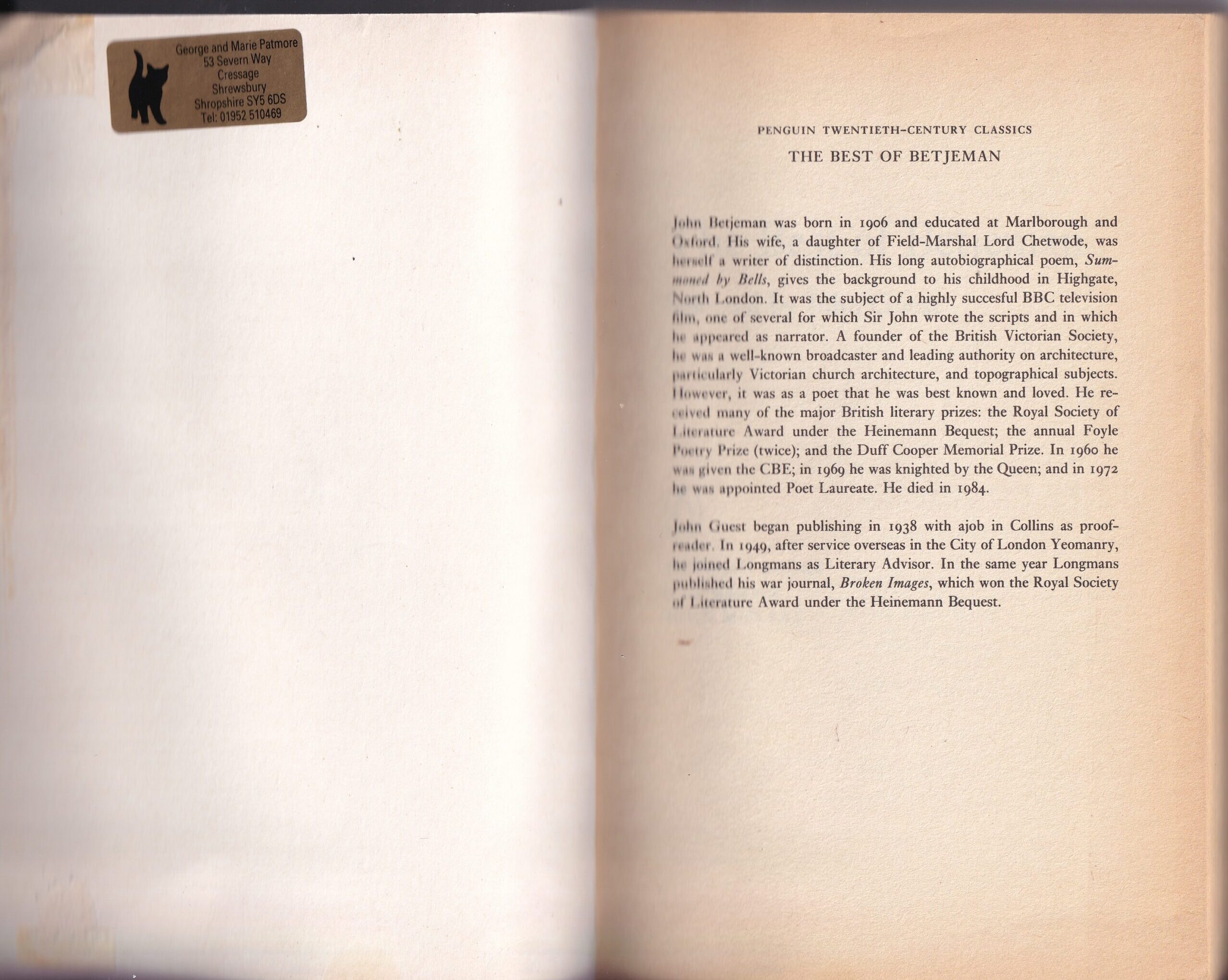 In addition to the best of Sir John’s poetry, this acclaimed selection includes prose that reveals him as architectural critic, social historian, conservationist, short-story writer, railway enthusiast, country lover, humorist. eccentric and Christian. Also included is a slightly abbreviated version of Metro-land, one of several highly successful television films for which Sir John wrote the scripts and in which he personally appeared as narrator. John’s John Guest’s appreciative understanding of his subject makes this an outstanding anthology.